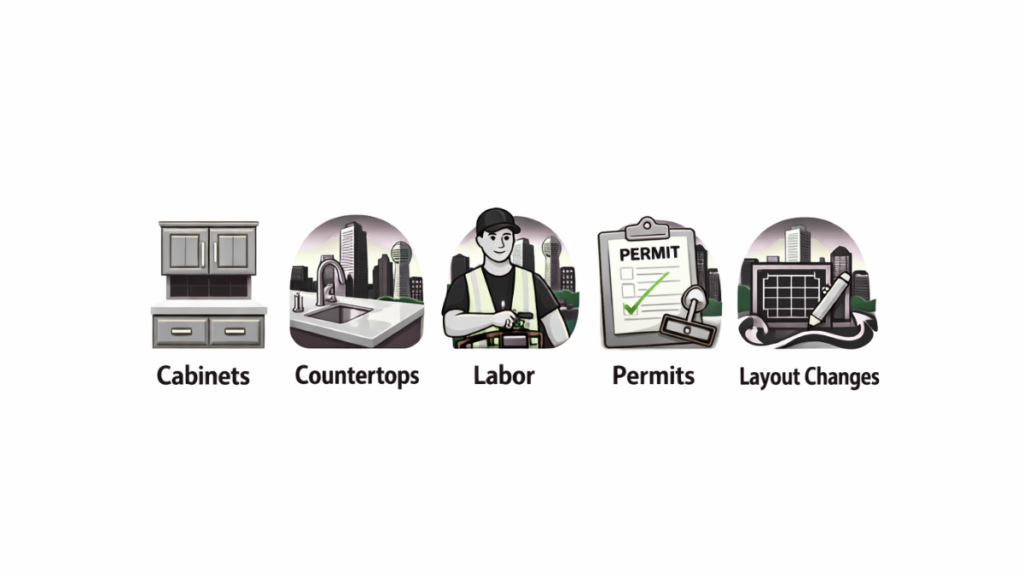 There is a separate rule book for kitchen remodelling in Dallas, Texas. Prices are shaped by labour rates, city requirements and material flow.